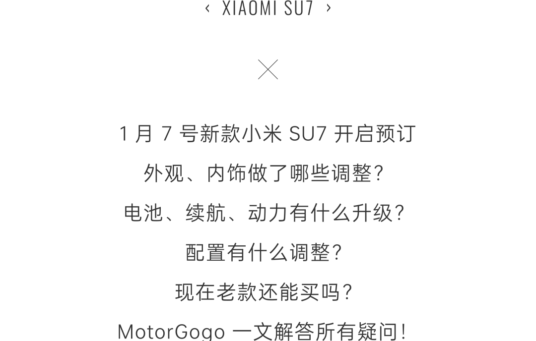 在预订权益方面,新用户支付1000元意向金(上市后可退),提车送价值699元智能双表盘,锁单可享优先排产。对于锁单未交付的现款SU7用户,按原锁单顺序优先排产,保留原有订单的购置税补贴权益,同样提车送价值699元智能双表盘,活动截止至1月10日24:00。部分已锁单现款SU7车型的用户,在1月7 - 10日可进行“限时升级”。