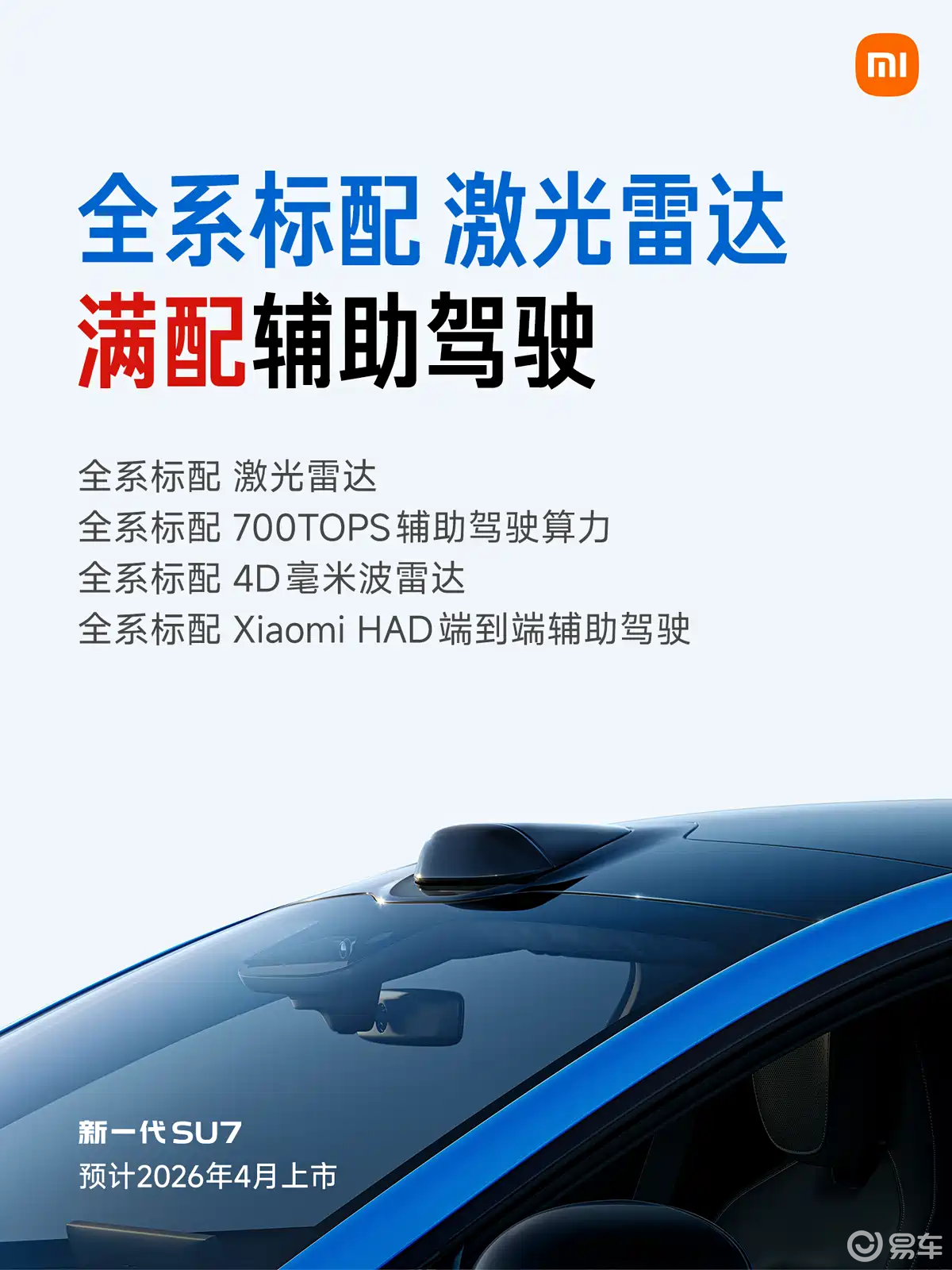 智能驾驶领域实现重大突破,全系标配激光雷达与辅助驾驶小蓝灯,智驾算力统一提升至700TOPS,系统升级为Xiaomi HAD辅助驾驶方案。此前入门版缺失的激光雷达与高算力配置,此次成为全系标配项。