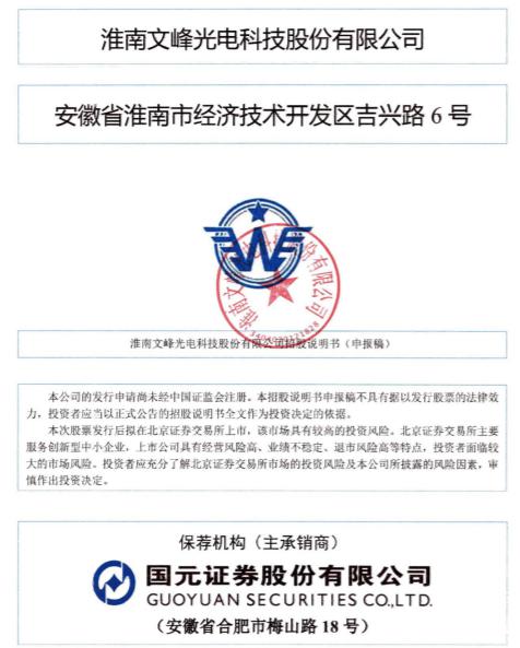 近日,北交所官网披露信息显示,淮南文峰光电科技股份有限公司(简称“文峰光电”)的北交所IPO申请已正式获得受理,其保荐机构为国元证券。这一消息标志着文峰光电在资本市场迈出了重要一步。