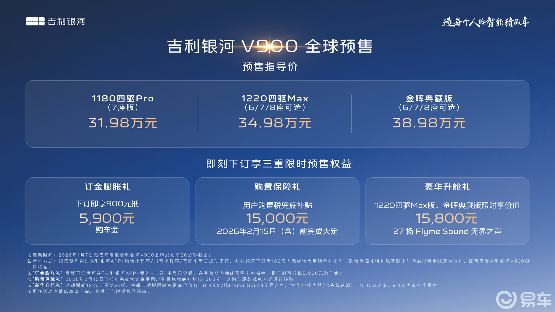 吉利汽车旗下高端新能源品牌银河系列迎来新成员——银河V900正式启动预售,预售价区间31.98万-38.98万元。这款定位“AI全场景家庭旗舰MPV”的新车,以四大核心优势重新定义家庭出行标准,直指高端MPV市场传统格局。