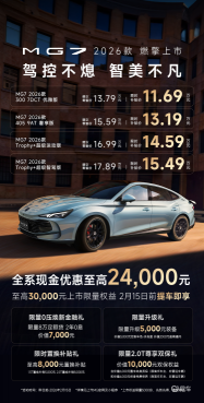 作为拥有百年历史的全球汽车品牌,MG在燃油车领域持续深耕的同时,正加速新能源技术转化应用。依托全球市场积累的技术优势,品牌将半固态电池等前沿科技反哺燃油产品,形成油电协同发展的独特路径。MG7 2026款的推出,不仅巩固了其在轿跑市场的领先地位,更通过技术平权理念让高端配置触达主流消费群体,为追求性能与智能的年轻用户提供全新选择。即日起至2月15日,订购用户可享最高3万元上市权益,包括金融贴息、置换补贴及终身质保等专属礼遇。