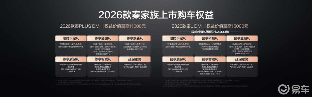 购车权益方面,两款车型均提供丰厚福利。秦L DM-i用户可享至高1.5万元权益,包括4000元购置税补贴、5000元金融贴息、3000元免费车色,顶配车型还限时赠送价值3000元的TBC高速爆胎稳行系统;秦PLUS DM-i用户则可获得至高4000元置换补贴、4000元金融贴息,以及免费赠送价值3000元的全新车色,至高1.1万元权益进一步降低购车门槛。