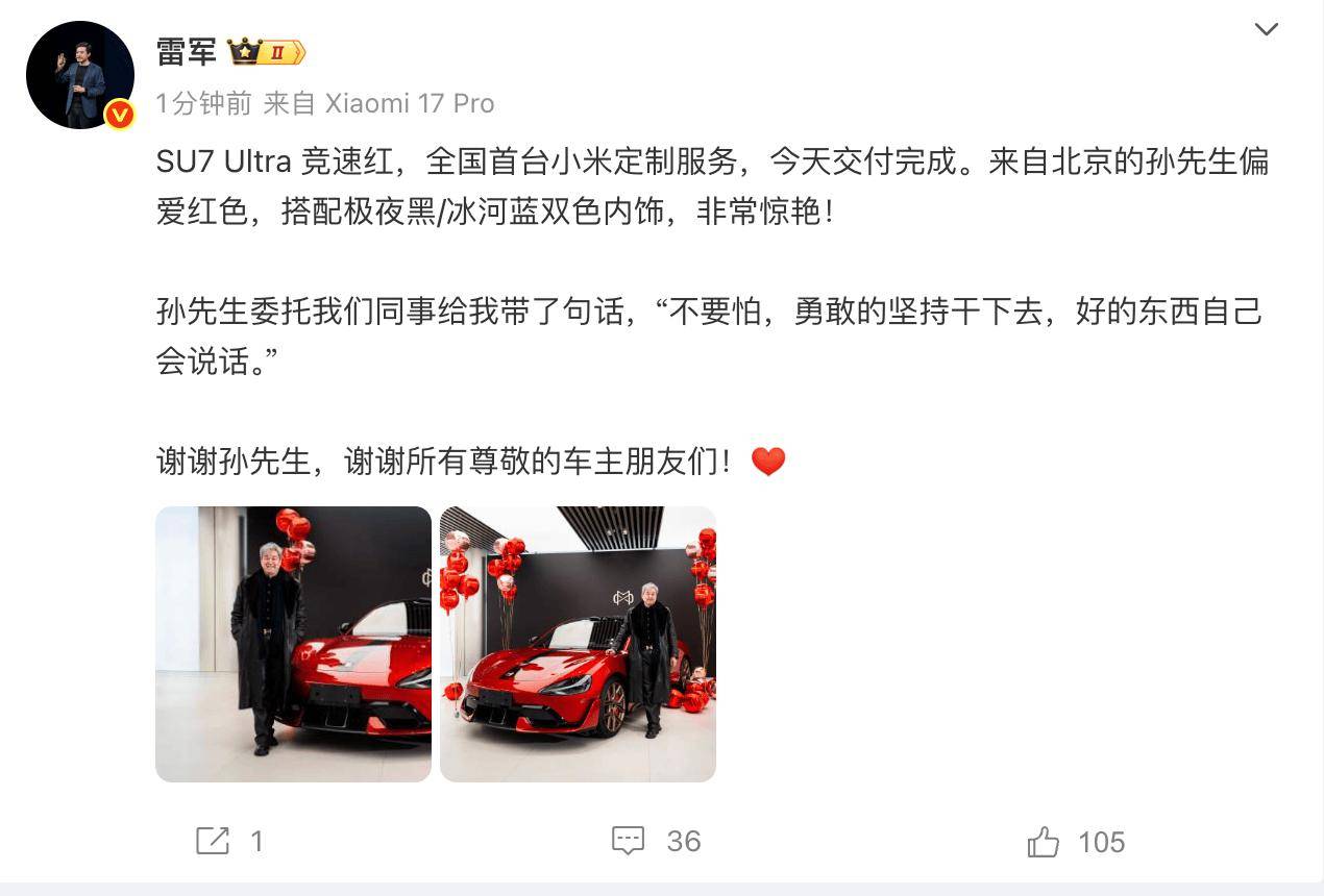 在交付现场,小米创始人雷军透露,孙先生通过同事转达了一句鼓励的话:“不要怕,勇敢的坚持干下去,好的东西自己会说话。”这一暖心互动不仅体现了用户对小米品牌的信任,也反映出定制服务在满足个性化需求方面的独特价值。