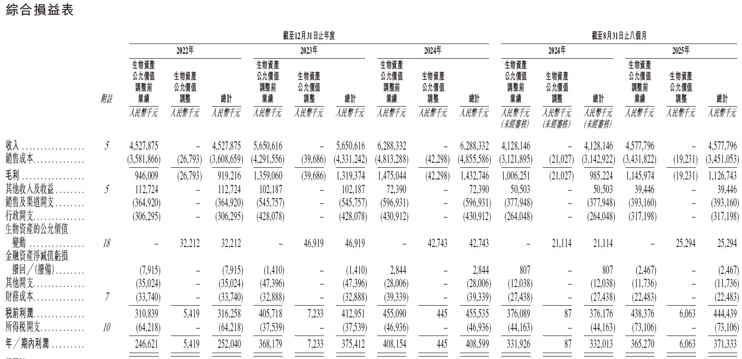 财务数据显示,老乡鸡在过去几年中表现出稳健的增长态势。2022年至2024年,公司的营业收入分别为45.28亿元、56.51亿元和62.88亿元;同期净利润分别为2.52亿元、3.75亿元和4.09亿元。2025年前八个月,公司实现营业收入45.78亿元,净利润3.71亿元,延续了此前的增长趋势。
