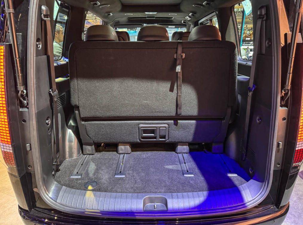 在空间布局上,STARIA电动版基于新的纯电架构,实现了平整的地板设计。车身长度达5.25米,宽度为1.99米,轴距超过3.2米,提供7座和9座两种座椅布局选择。若选择7座版本,第三排座椅后方的储物空间可达1303升,足以满足7人长途出行的行李存放需求。高车顶线条、双侧宽大滑门以及大型尾门开口的设计,均以功能性为导向,不仅增加了车内头部空间,还方便了货物的装卸。