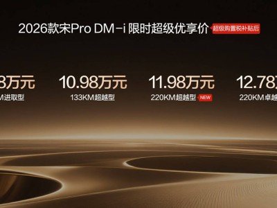 2026款宋Pro DM-i近日推出220km长续航版本,以9.98-12.78万元的限时优享价正式上市。这款新车在续航能力上实现突破,CLTC工况下纯电续航达220km,满油满电状态下综合续航里程可达1600km,NEDC百公里亏电油耗仅3.2L,为家庭用户提供了更经济的出行选择。