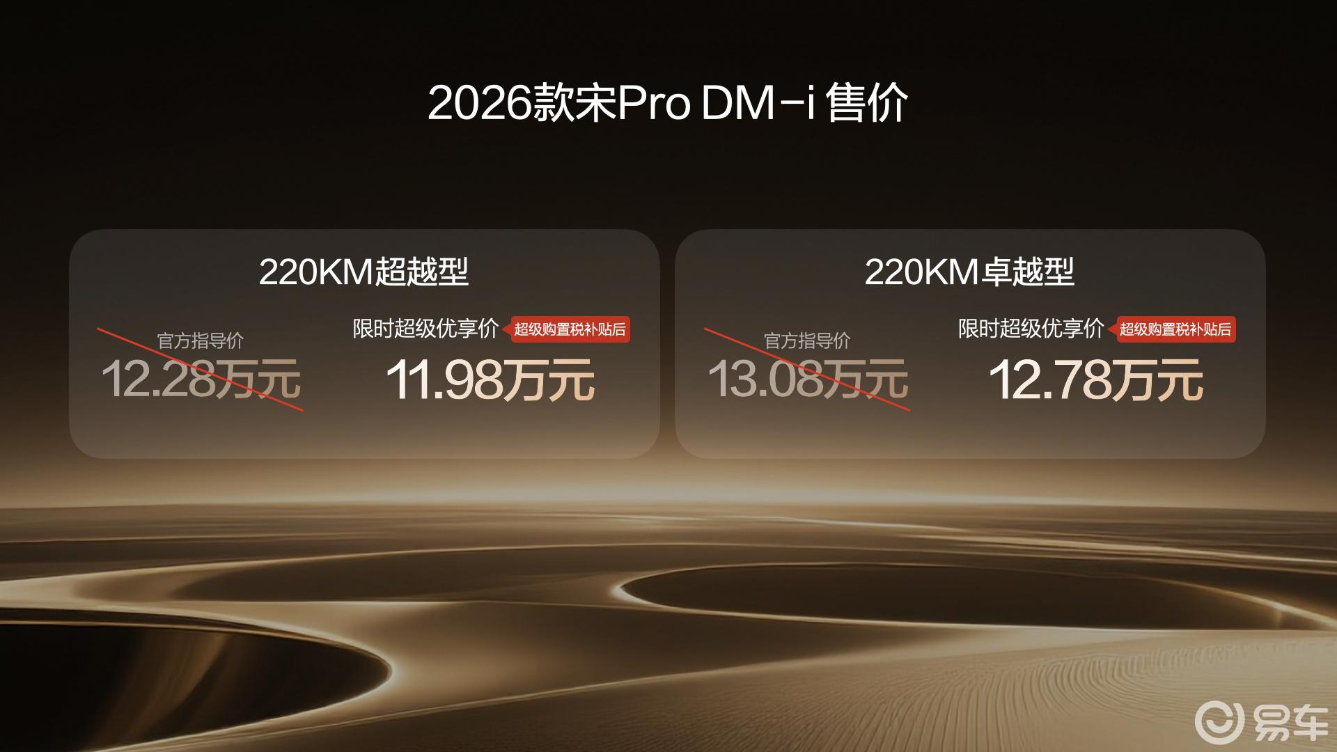 比亚迪再度发力,推出2026款宋Pro DM-i长续航版本,以220公里CLTC纯电续航里程和1600公里综合续航能力,重新定义A级插混SUV市场标准。新车全系限时售价9.98-12.78万元,在续航、智能、舒适与安全四大维度实现突破性升级,为家庭用户提供更具竞争力的出行解决方案。