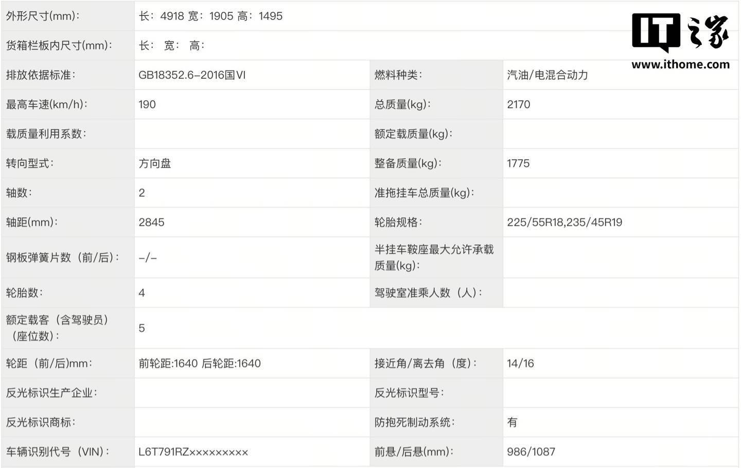 外观方面,新车延续家族化设计语言,采用封闭式前脸搭配贯穿式日间行车灯,车尾贯穿式尾灯与车头形成呼应。隐藏式排气布局进一步强化了新能源车型的科技感。车身尺寸保持4918×1905×1495毫米的三围数据,轴距达2845毫米,与现款车型完全一致。不过由于电池容量增加,整备质量提升至1775公斤,较现款150公里续航版本增加40公斤。