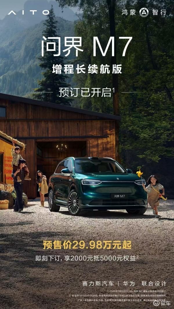 问界品牌近日推出全新问界M7增程长续航版,以29.98万元起的预售价正式开启预售通道。消费者即刻下订可享2000元抵5000元的购车权益,为家庭用户提供更具性价比的出行解决方案。这款定位"家庭智慧SUV"的新车,在续航能力、空间布局和智能配置方面实现全面升级,进一步巩固其在30万级SUV市场的竞争优势。