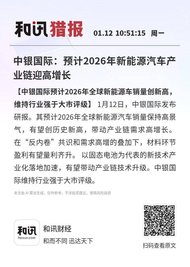 中银国际近日发布研究报告指出,全球新能源汽车市场在2026年有望延续强劲增长态势,销量或将突破历史纪录。这一趋势不仅将推动产业链整体需求持续攀升,也为材料环节带来显著的盈利改善机遇。在行业"反内卷"共识与需求扩张的双重驱动下,相关企业有望实现销量与利润的同步提升。