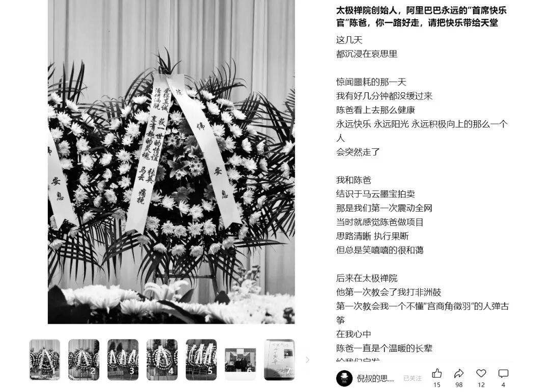 近日,电商领域知名人士倪叔透露了一则令人惋惜的消息:阿里巴巴太极禅院创始人、马云前助理陈伟已离世。据倪叔描述,在陈伟的告别仪式上,马云夫妇特意送上了花圈以表哀思。
