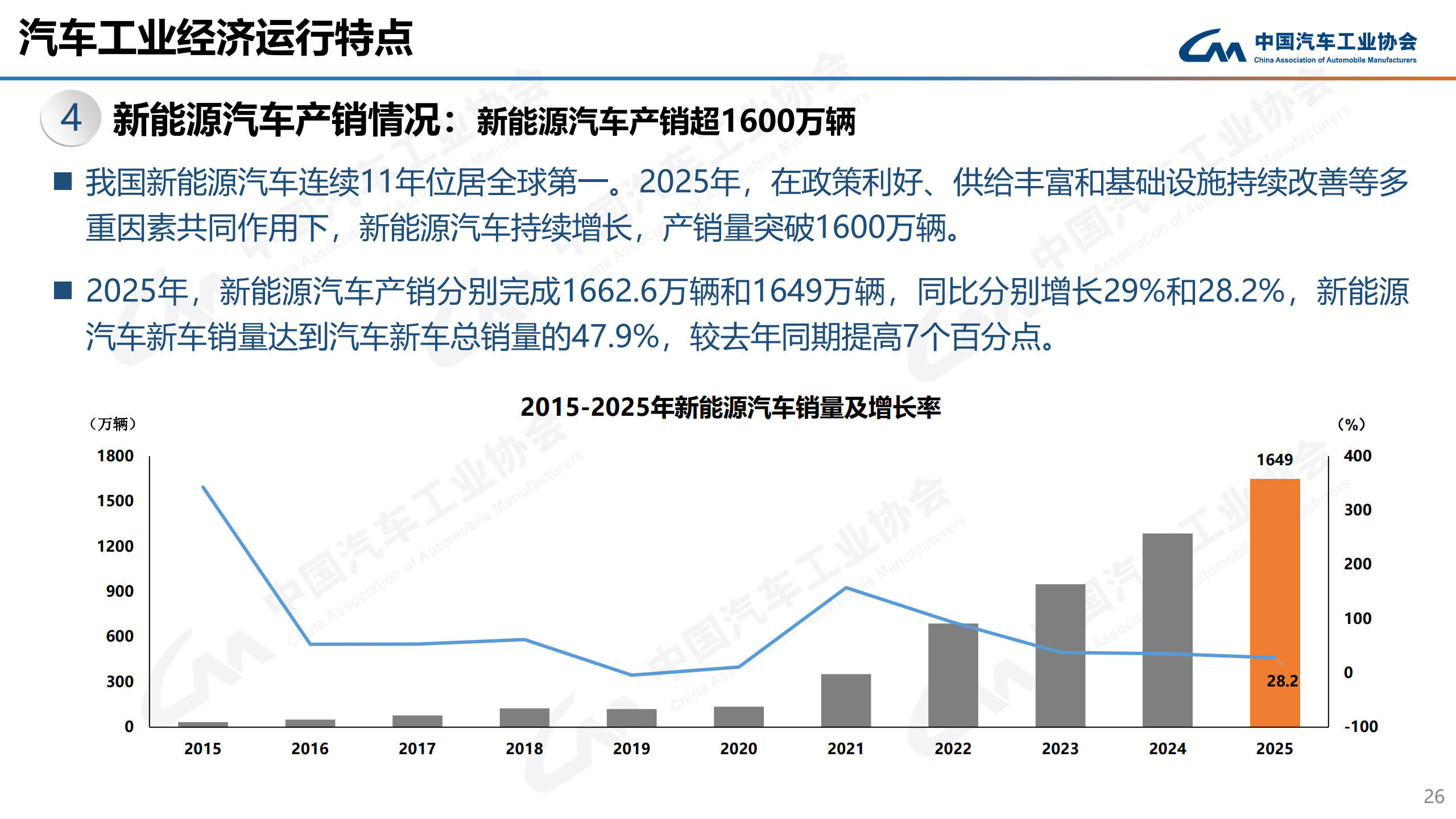 对于2026年市场走势,中汽协预测中国汽车市场总销量将达到3475万辆,较2025年增长1%。其中,乘用车销量预计为3025万辆,同比增长0.5%;商用车销量450万辆,同比增长4.7%;新能源汽车销量1900万辆,同比增长15.2%;出口量预计达到740万辆,同比增长4.3%。这一预测显示,中国汽车市场将继续保持稳健增长态势,新能源汽车和出口市场将成为重要增长点。