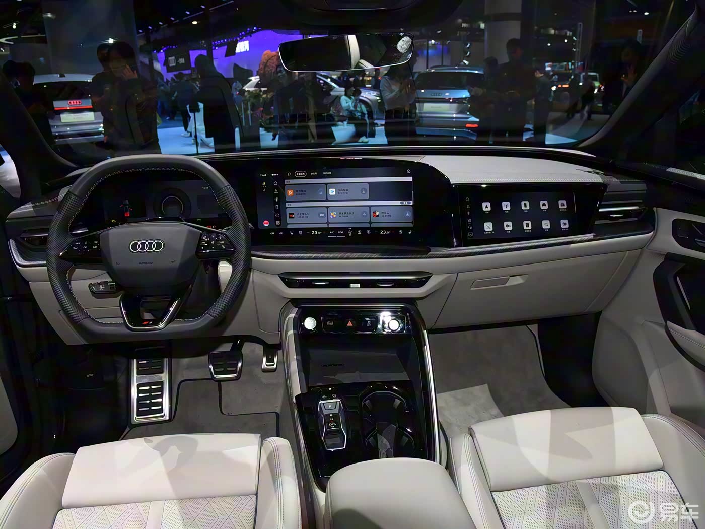 新车尺寸较前代显著提升,长宽高分别达到4842/1900/1660毫米,轴距延长至2945毫米,提供传奇黑、茉莉白等五种车身颜色及四种内饰配色方案。设计层面,全新八边形进气格栅搭配大孔径网状结构,辅以可选装的黑光包(含黑色外后视镜、门把手及红色制动卡钳),强化了运动化视觉效果。中国市场专属的quattro高位刹车投影与发光四环Logo,进一步凸显本土化适配特征。