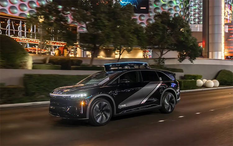 该传感器系统由Nuro提供的自动驾驶软硬件技术支持,并搭载Nvidia Thor高性能计算平台,为车辆提供强大的实时感知、决策和控制能力。通过中央显示屏,乘客可随时查看行驶路线、环境识别结果以及自动驾驶系统的关键决策信息,还可自主调节座椅加热、空调和音响系统等舒适性配置,并在紧急情况下直接联系客服或请求车辆安全停靠。