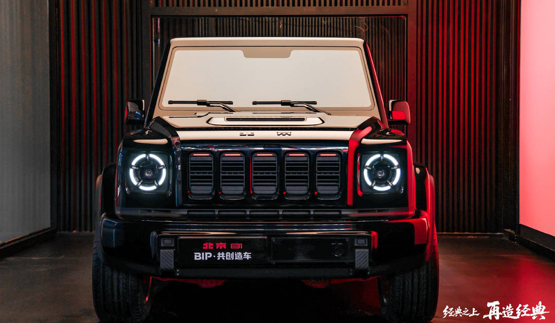 设计语言上,北京81 2.0共创版延续了硬朗复古的视觉基调。标志性五孔前格栅与圆形头灯的组合极具辨识度,大灯组采用“天圆地方”理念,方形外壳包裹圆形灯组,内部由五条间断曲线LED日行灯与五条转向灯交错构成,巧妙呼应“5”这一核心设计元素。车侧轮廓棱角分明,经典方盒子造型搭配贯穿式腰线与外扩轮眉,力量感呼之欲出。大尺寸运动轮圈与高性能制动卡钳的组合,不仅提升制动性能,更成为侧面视觉焦点。