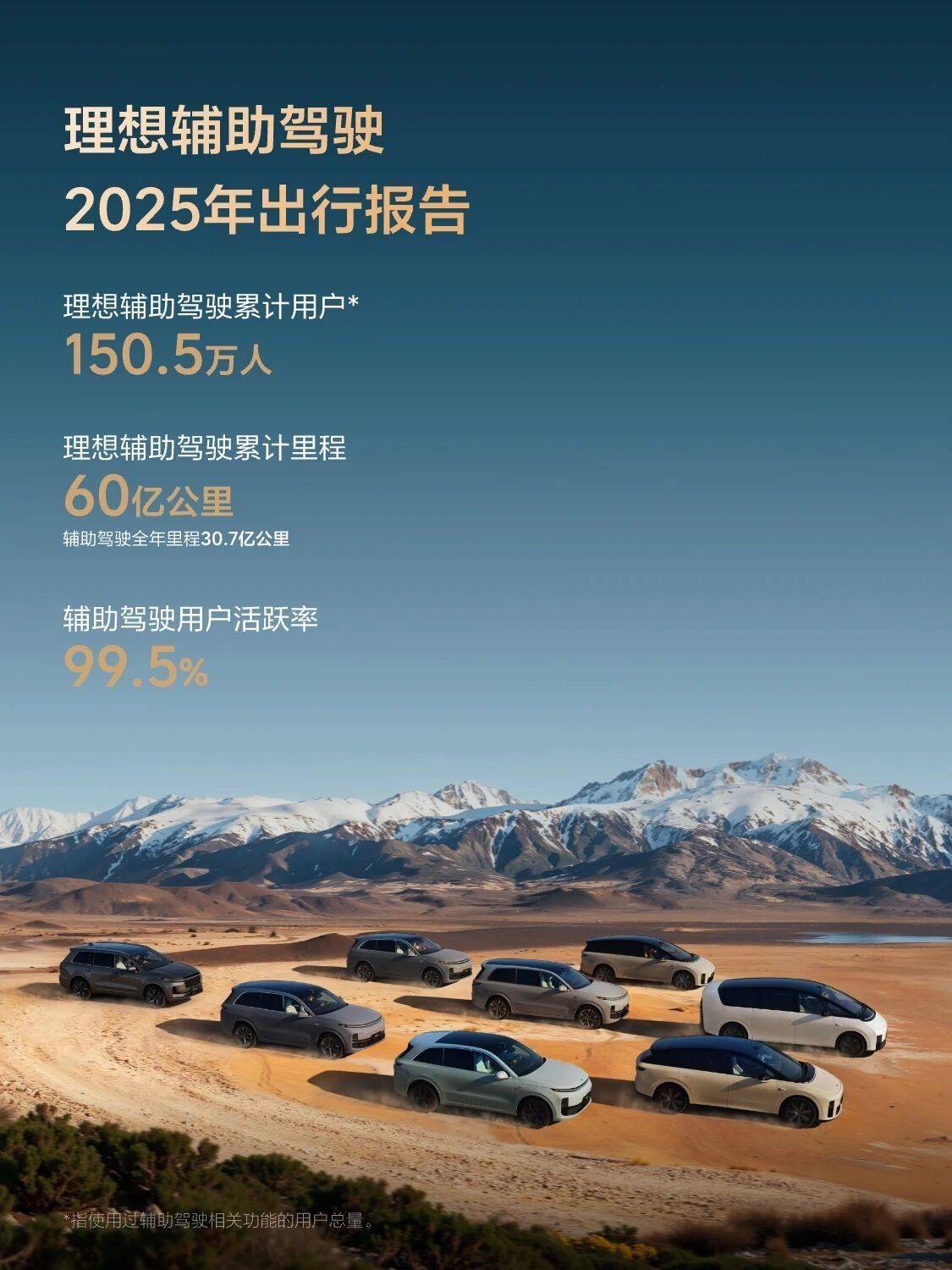 理想汽车近日公布了其2025年辅助驾驶系统运行情况的详细数据,展现出智能驾驶技术在用户群体中的广泛普及与深度应用。截至统计周期,已有超过150.5万名用户激活了理想汽车的辅助驾驶功能,全年累计使用里程达30.7亿公里,系统累计总里程突破60亿公里,用户活跃率高达99.5%,这一数据印证了智能驾驶功能已成为用户日常出行的核心配置。