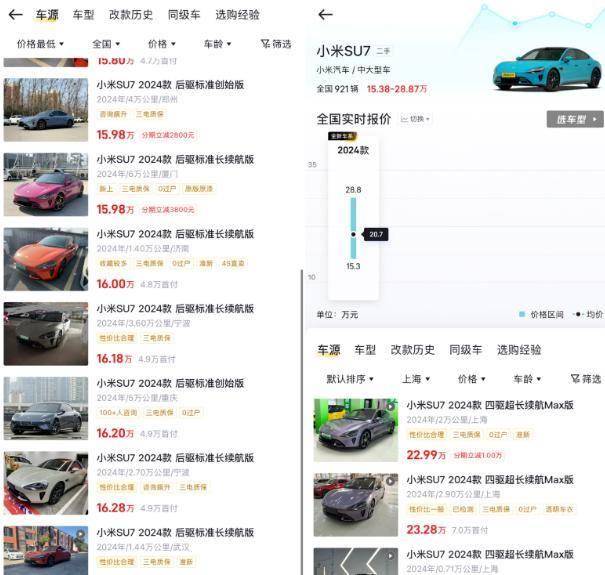 近期,汽车市场上一则关于小米SU7的动态引发广泛关注——这款上市不久的新能源车型,在二手市场遭遇价格“滑铁卢”,部分车源价格半年内跌幅接近5万元,个别案例甚至超过15万元,让不少车商和车主直呼“措手不及”。