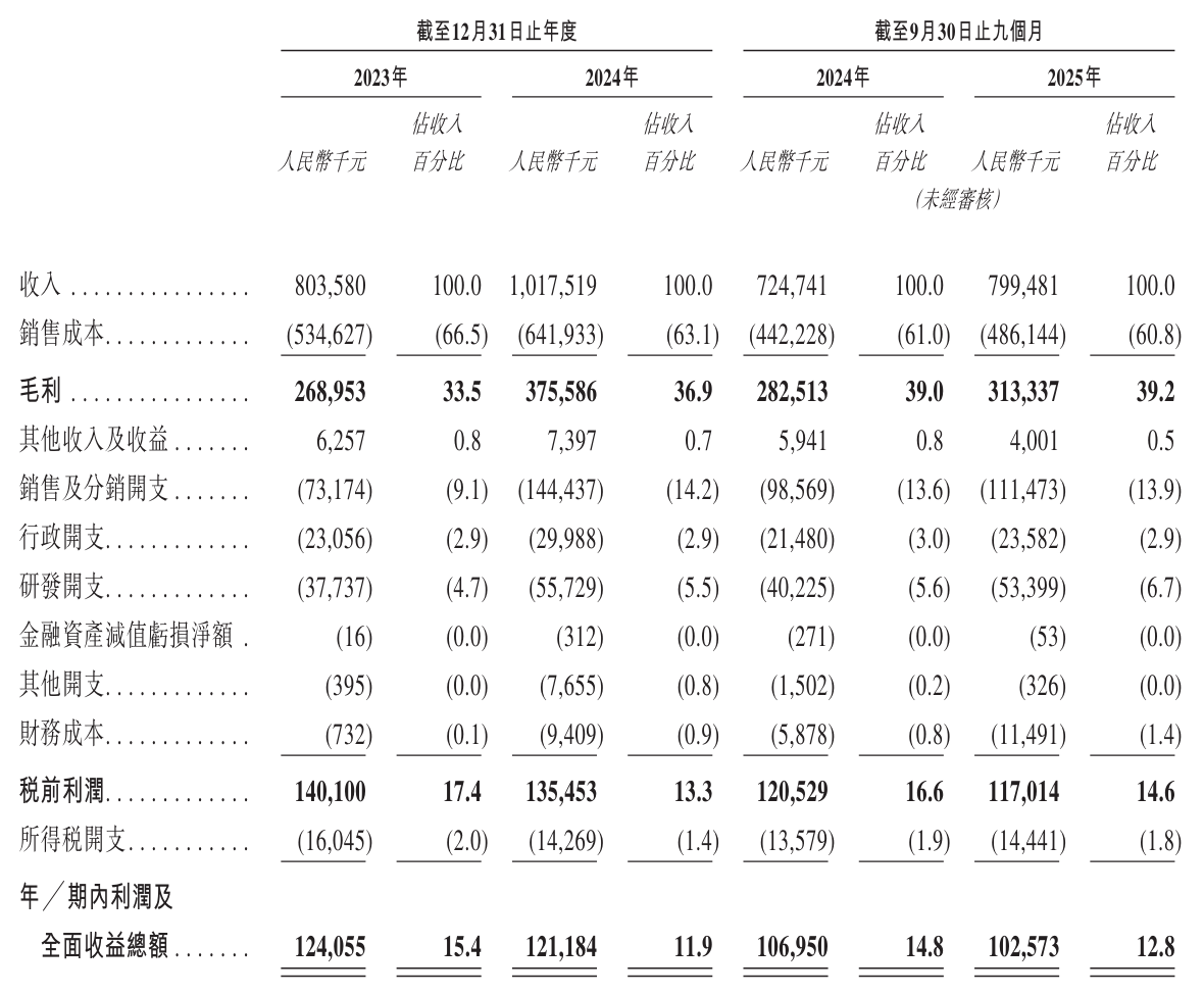 在利润调整方面,文石BOOX同样表现出色。2023年和2024年,公司经调整净利分别为1.24亿元和1.31亿元;2025年前9个月,经调整净利为1.22亿元,显示出较强的盈利能力和财务健康度。