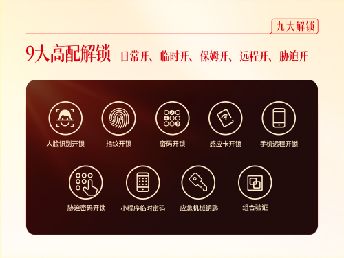 春节探亲、家人团聚,亲朋好友往来频繁,居家安全与进出便利也尤为重要。樱花DZ-D70的人脸识别解锁功能,即便双手提满年货,也能刷脸快速进门。还有指纹识别、虚位密码、加密感应卡、手机远程等9大解锁方式,无论老人孩子,都能找到最习惯的方式,让团圆进门无阻。