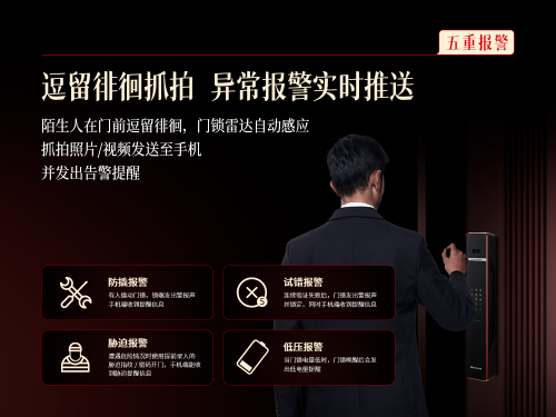 新年讲究吉祥寓意,红色象征着喜庆、吉祥与兴旺。樱花DZ-D70精准把握这一文化情感需求,匠心打造经典“黑曜红”配色。锁身采用CNC精雕工艺,搭配二氧赤红金属C边设计,开门之间,即是“见红运”的美好开端。高纯度铝材机身经过阳极氧化处理,色泽均匀饱满,如同对新一年安稳红火生活的期许。更其升级的IP65等级,也实现了更强的防尘防水保护。无论是楼道常见的扬尘、南方潮湿的回南天,还是北方雨雪天的意外溅水,都能从容应对,确保内部精密元器件的长久稳定运行。美观与强悍在此融合:这抹东方红韵,不仅承载着对家宅平安、新年顺遂的美好祝愿,更以扩展至别墅大门、车库门等更广泛场景的出色适应性,成为守护家园风雨无阻的可靠“门神”,实现了节日氛围、家居美感与全天候实用价值的统一。