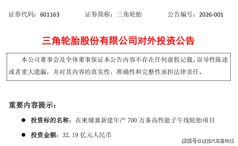 三角轮胎股份有限公司近日宣布,将斥资32.19亿元人民币在柬埔寨启动一项重大投资项目,旨在通过新建年产700万条高性能子午线轮胎生产线,深化其全球化战略布局。此举不仅标志着公司在制造、研发及市场拓展方面迈出关键一步,更被视为提升品牌国际影响力与核心竞争力的重要举措。
