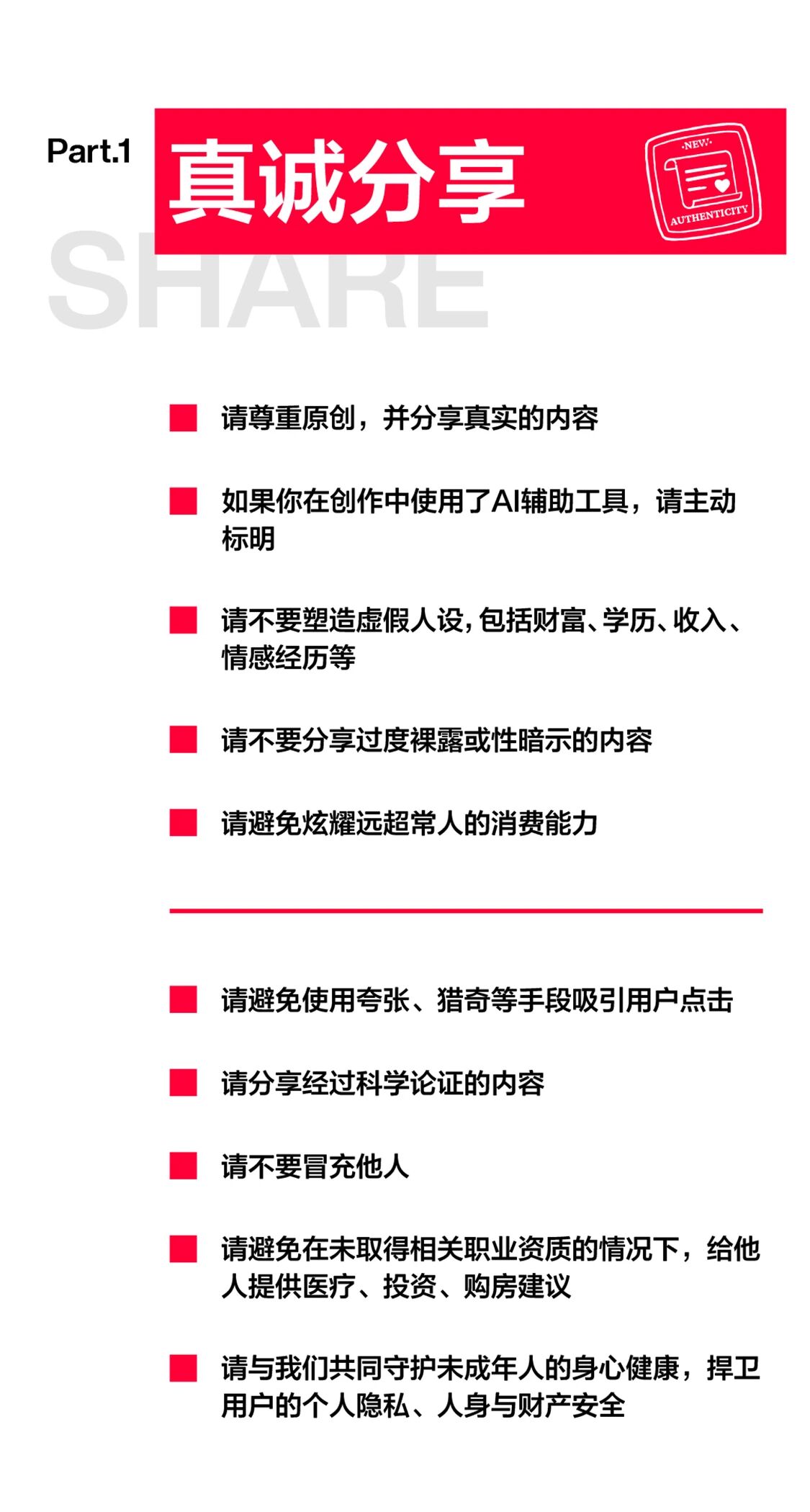 在内容真实性方面,新规强化了“抵制虚假内容”的约束力。创作者需确保分享内容基于真实经历,禁止虚构身份背景或刻意夸大事实,商业合作内容必须明确标注利益关系。平台将建立用户举报奖励机制,对查实的虚假信息发布者实施信用扣分制度。