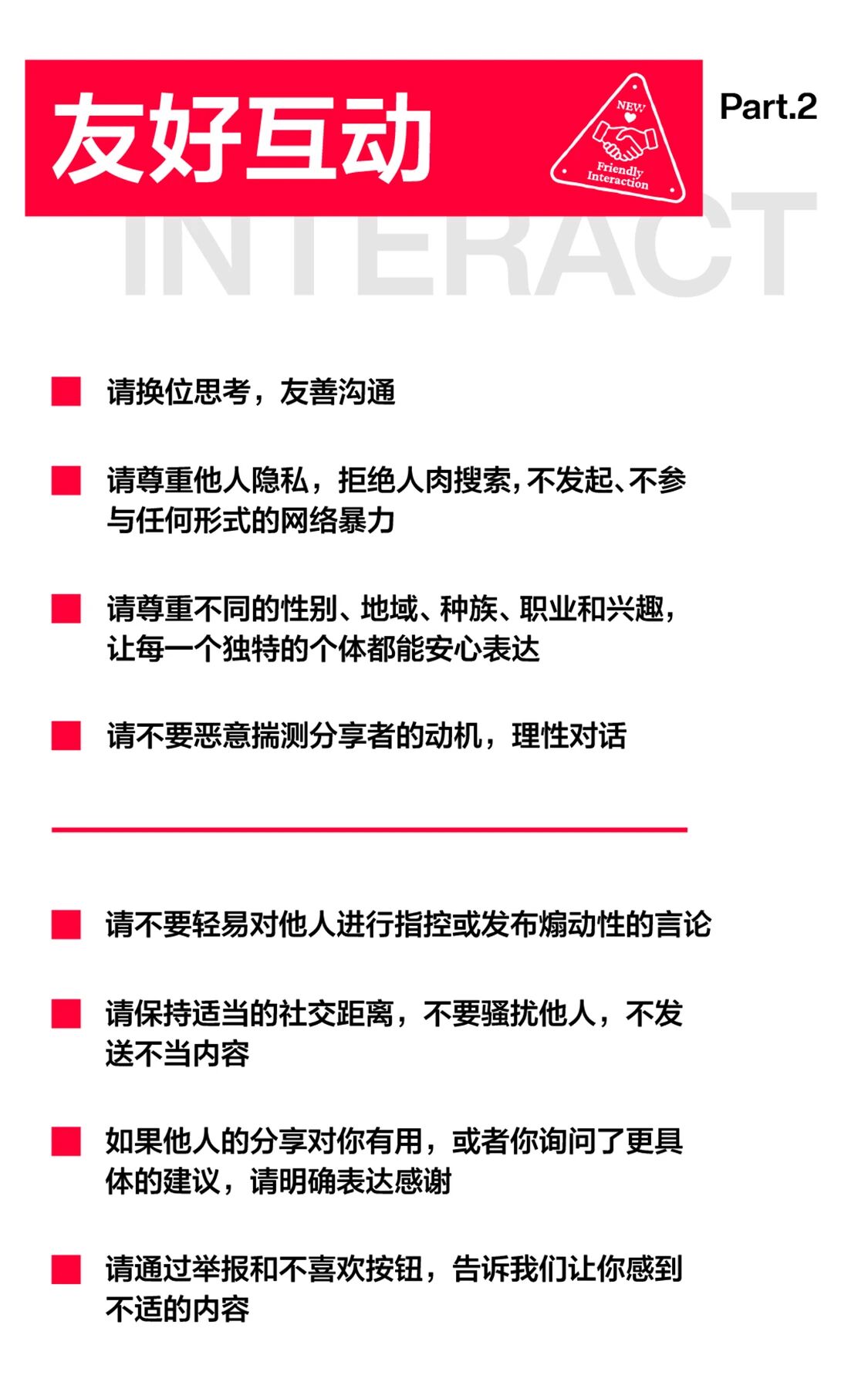小红书平台近日正式推出全新升级的「社区公约2.0」,以“真诚分享,友好互动”为核心价值观,从内容规范、用户行为、商业经营三个维度构建更健康的社区生态。此次更新明确提出三大行动准则,旨在引导用户与创作者共同维护平台秩序。