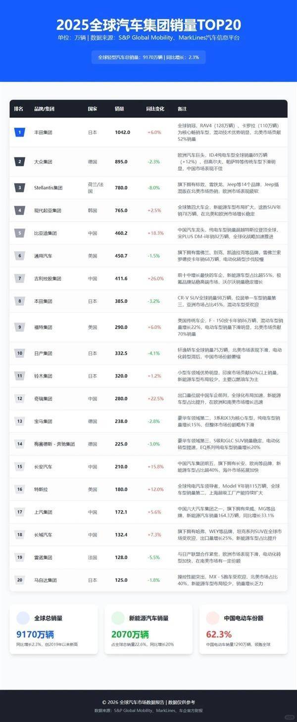 2026年,全球汽车市场的竞争将更加激烈。长安、东风等企业已将年度目标设定为300万辆量级,并加大新能源和出口业务的投入。虽然300万辆的销量未必能确保进入全球前十,但中国车企的集体发力正在改变全球汽车产业的格局。未来,中国车企需在保持规模优势的同时,聚焦于打造具有全球认可度的“世界车”,以实现从“体系胜利”到“定义胜利”的跨越。