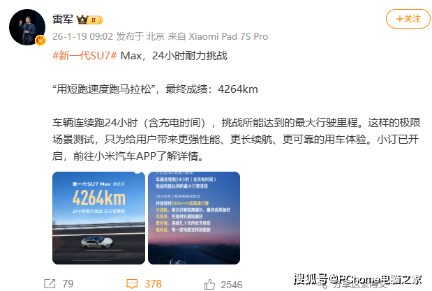 在汽车性能测试领域,小米汽车新一代SU7 Max近日交出了一份令人瞩目的答卷。该车型成功完成24小时耐力挑战,累计行驶里程达到4264公里,这一成绩充分彰显了其卓越的可靠性与强大的技术实力。