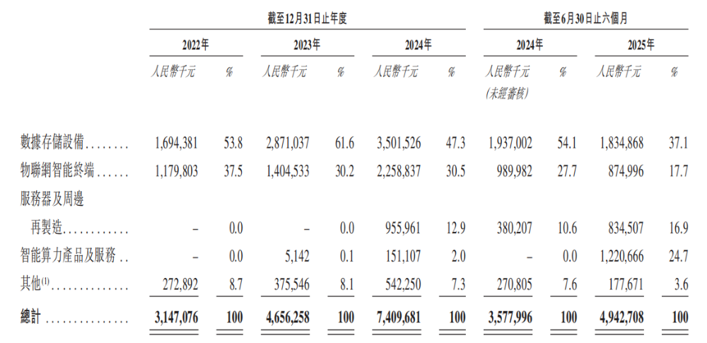 在研发投入方面,公司2022至2025年上半年分别支出1.027亿、1.564亿、2.406亿和1.092亿元,占同期收入比例维持在2.2%-3.4%区间。业务布局涵盖四大核心领域:数据存储设备、物联网智能终端、服务器及周边再制造,以及智能算力产品服务。其中,2025年起公司重点投入AI基础设施建设,算力服务业务实现突破性增长。