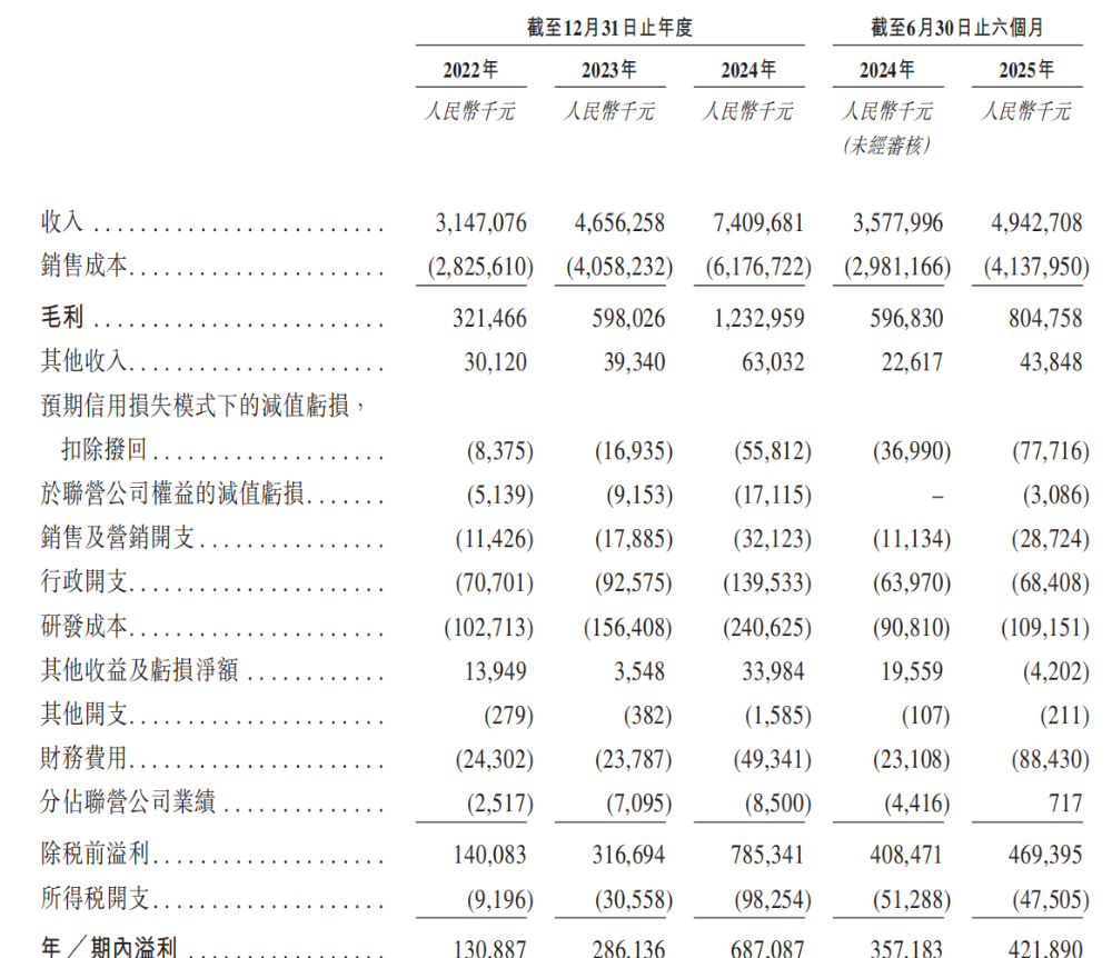 财务数据显示,协创数据营收呈现强劲增长态势。2024财年总收入达74.097亿元人民币,2025年上半年收入为49.427亿元。增长动力主要源于物联网设备需求激增、AI技术加速落地以及云计算与大数据应用的普及,这些因素共同推动客户群体扩张和产品服务需求攀升。同期毛利分别为3.215亿、5.98亿、12.33亿和8.048亿元,毛利率从10.2%提升至16.6%;净利润则从1.309亿增至6.871亿元,2025年上半年已达4.219亿元。