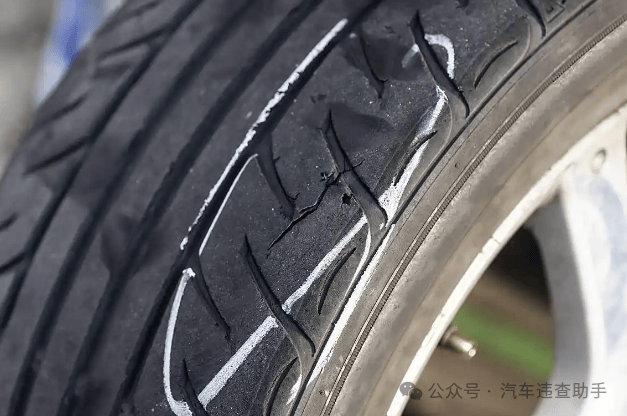 轮胎老化的过程通常从外层开始,裂纹会逐渐加深、变宽。轮胎正面和侧面的老化风险存在差异:正面橡胶较厚,内部有钢丝加固,因此裂纹对安全的影响相对较小;而侧面橡胶较薄,缺乏钢丝支撑,是爆胎的高发区域,需要特别关注。判断轮胎是否需要更换,关键在于观察裂纹的深度、宽度和长度。