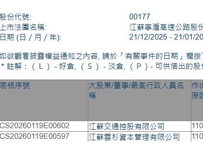 江苏宁沪高速公路(00177.HK)获云杉资本增持1148.6万股