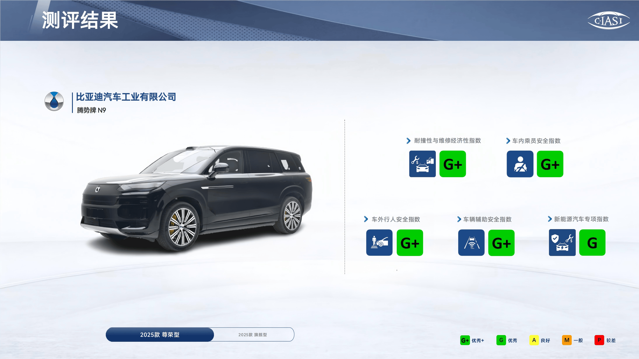 中国保险汽车安全指数(C-IASI)最新公布的测评结果显示,腾势N9在2025年度第二批测试中表现卓越,成为唯一一款在全部五项核心测试中均斩获最高评级的车型,实现了“全优大满贯”的突破性成绩。