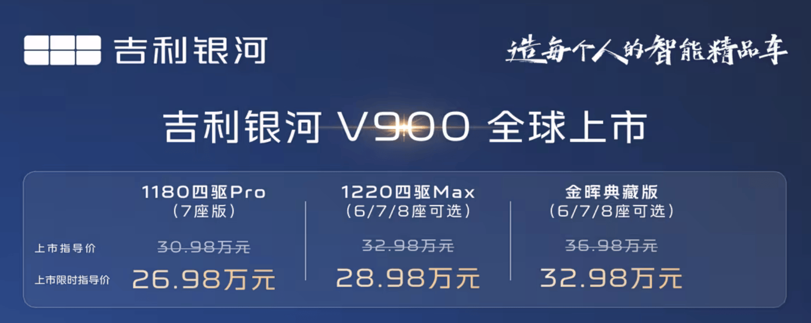 随着V900的加入,吉利银河产品矩阵已覆盖从精品小车到豪华MPV的多个细分市场,价格区间进一步拓宽。凭借越级产品力与诚意定价,这款新车有望成为市场格局的重塑者,为品牌销量增长注入新动能。