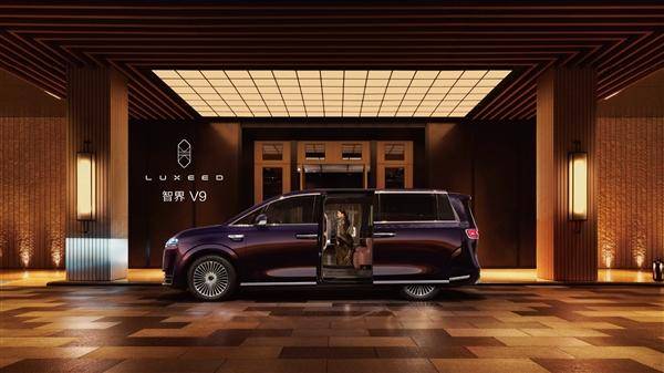 外观方面,智界V9采用封闭式前脸设计,仅在下部保留横幅条或网格状进气口,搭配贯穿式灯带与镀铬装饰件,形成横向拉伸的视觉效果。大灯组延续智界家族设计基因,但针对MPV车型特性进行优化调整。车身侧面线条平直硬朗,配备密辐条轮圈与镀铬装饰件,21英寸大尺寸轮毂进一步强化整车气势。尾部设计突破传统,贯穿式尾灯采用分层结构,两侧集成智驾小蓝灯,夜间辨识度显著提升。