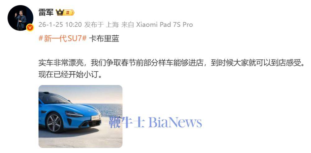 据官方消息,新一代SU7计划于2026年4月正式上市销售。为让消费者提前感受新车魅力,小米汽车创始人雷军透露,目前正全力推进生产进度,争取在春节前将部分样车运送至线下门店展示。这一举措不仅为潜在购车者提供了近距离接触实车的机会,也展现了小米对产品品质的信心。