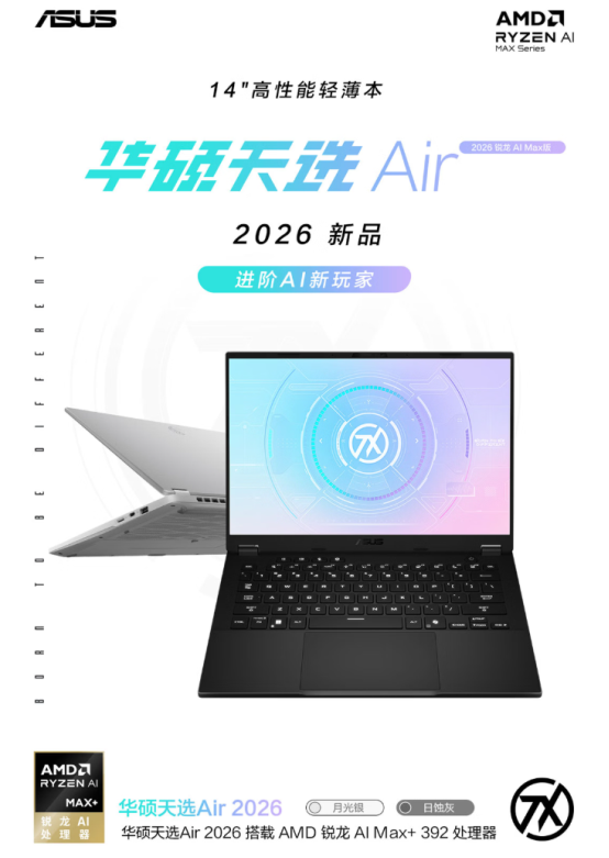 华硕天选Air 2026 锐龙AI Max版 月光银(64GB+1TB):