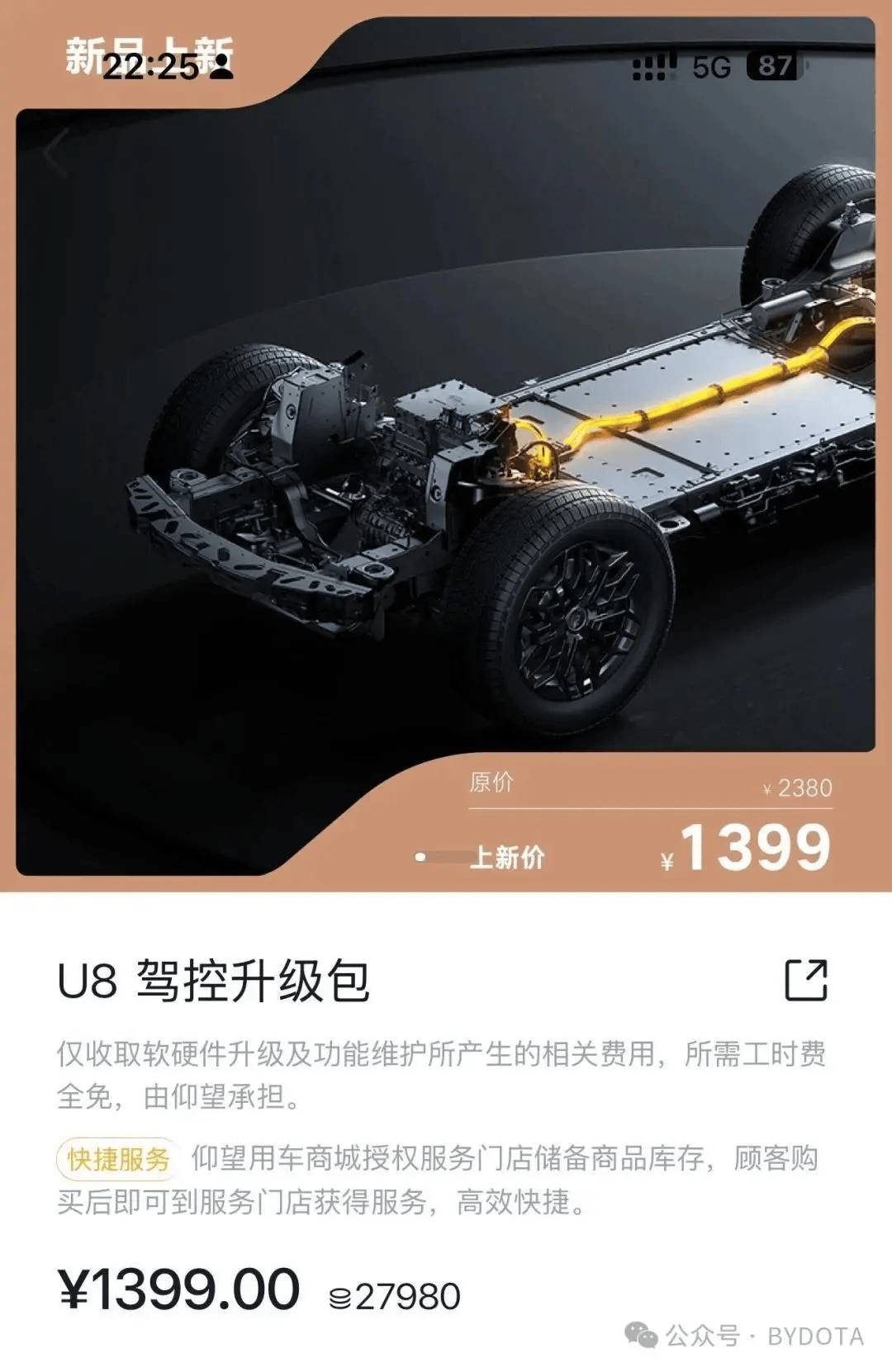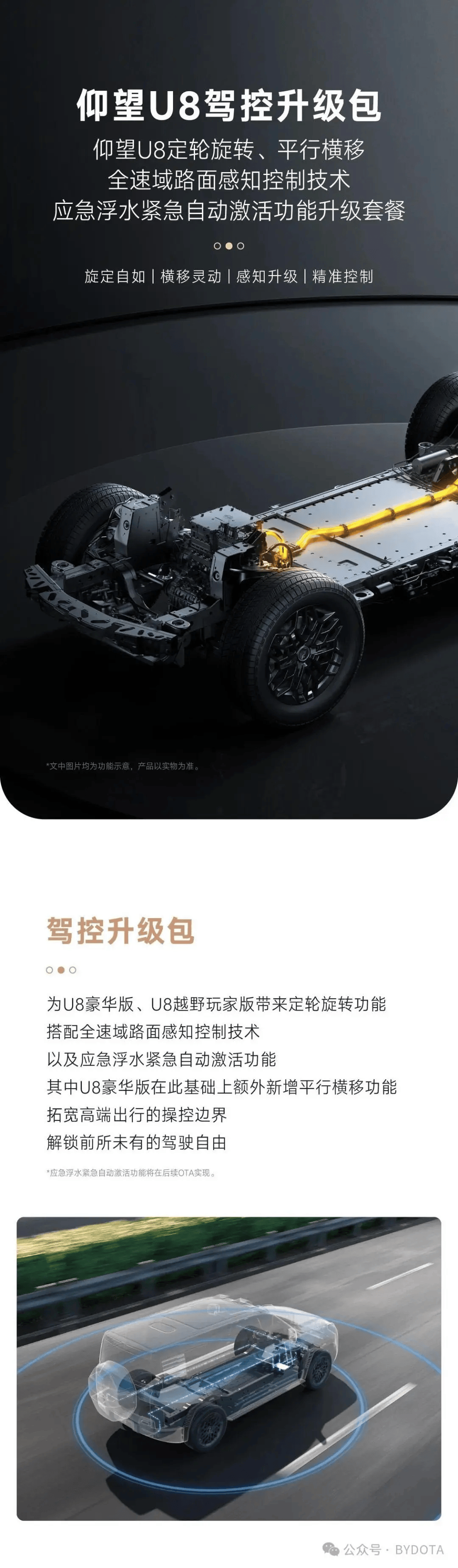 比亚迪近日宣布,为旗下仰望U8豪华版与越野玩家版车型推出硬件升级服务,升级包定价1399元,重点提升四项核心驾控功能,为车主带来更智能、更安全的驾驶体验。