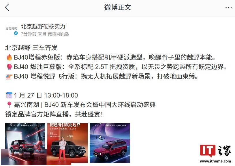 北京越野官方近日宣布,旗下BJ40系列将推出三款全新车型,其中备受瞩目的增程悦野飞行版将于次日正式开启预售。此次同步亮相的还有燃油巨幕版和增程赤兔版,三款车型以差异化定位满足不同越野爱好者的需求。