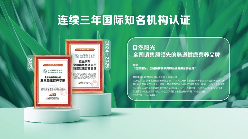 这款自然阳光优萌君益生菌的品质,背后是自然阳光品牌的专业积淀。作为全球领先的天然健康营养品品牌,自然阳光始终坚守“严肃营养”的理念,致力于为消费者提供科学、有效的健康解决方案。其连续三年获得国际权威调研机构欧睿咨询的认证,这无疑是对自然阳光品牌实力与产品品质的证明。2017年5月,国家商务部给自然阳光颁发了直销经营许可证,更是进一步印证了其品牌的合规性。