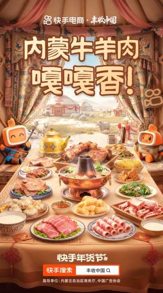 “丰收中国”计划每月落地一期,每一期深度绑定多位快手优质带货达人,助力地方经济发展。该计划首站选择落地内蒙古呼和浩特,并与快手电商达人蛋蛋达成合作,将通过专场带货,助力内蒙古特色牛羊肉产业在年货节期间的销售爆发。