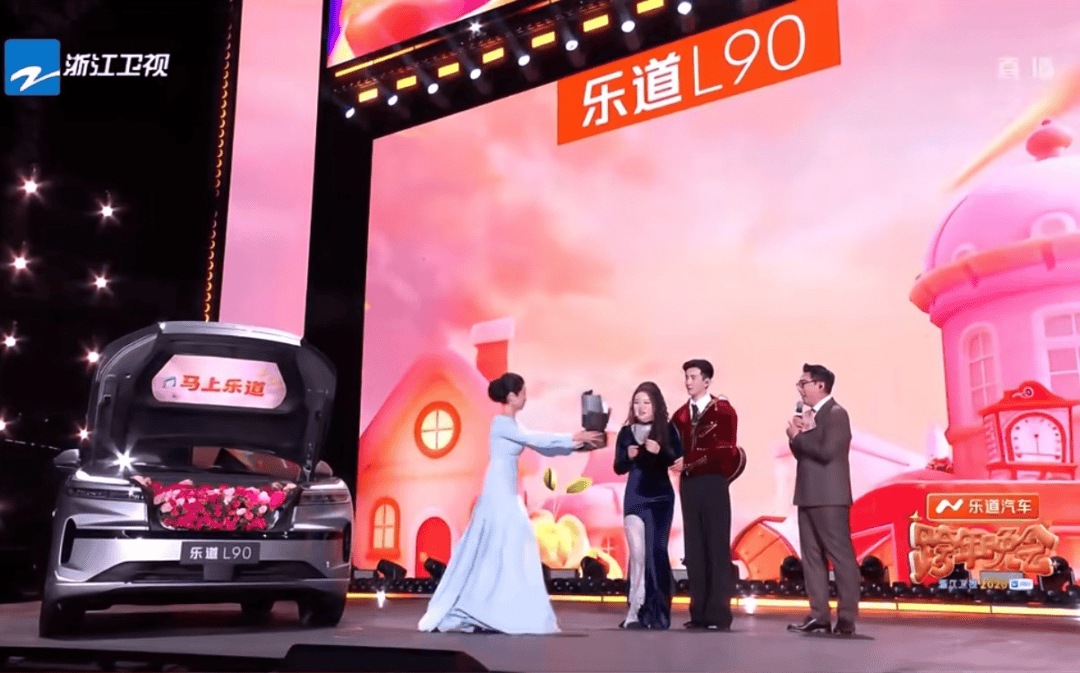 线下场景中,乐道通过浙江卫视跨年晚会创造高密度情绪共振。作为晚会冠名商,品牌将L90前备舱改造为惊喜盲盒:装满玫瑰助力李川求婚、成为张信哲新歌首发平台……这些设计让车退居配角,人的真实情感成为传播核心。晚会相关内容引发全网14个TOP1热搜,社媒平台用户自发传播的并非产品参数,而是告白、歌唱等情绪瞬间。线下,乐道组织车主参与晚会服务,分发暖宝宝等物品,进一步深化品牌与用户的情感连接。