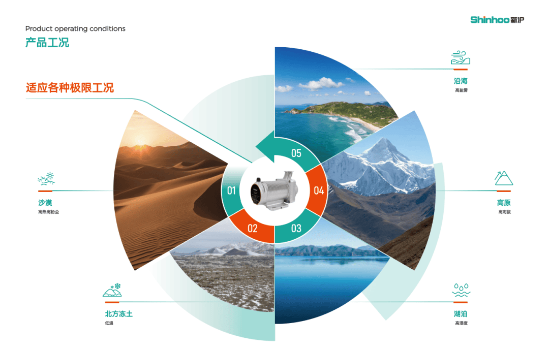 筑牢可靠防线电机防护等级达 IP54,可有效抵御风沙、雨水侵入;通过 720 小时盐雾腐蚀测试,在高海拔盐碱环境中依旧稳定运行。此外,电机采用 F 级绝缘设计,精准适配高海拔低气压下的散热需求。