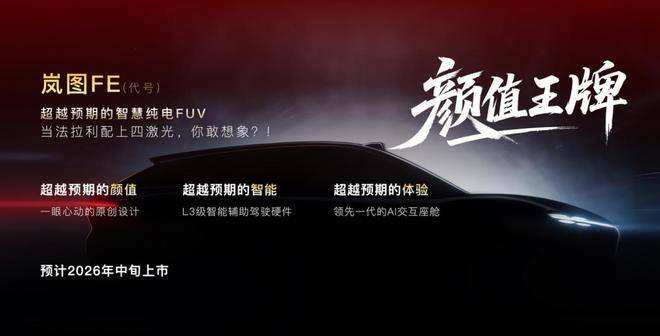 代号"FE"的全新FUV车型则聚焦年轻消费群体,由岚图与华为乾崑联合研发团队打造。该车突破传统设计框架,采用先锋运动美学语言,配备纯电驱动系统与智能四驱技术。项目负责人表示,这款产品将颠覆市场对"家庭用车"的固有认知,通过模块化智能空间设计,满足Z世代用户对个性化与实用性的双重需求,预计2026年中旬正式发布。