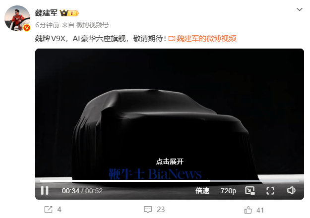 长城汽车董事长魏建军近日通过社交平台发布视频,正式宣布魏牌高端车型V9X即将登场。这款被定位为“AI豪华六座旗舰”的新车,将搭载长城汽车最新研发的旗舰级技术序列“归元S”,并基于全球首个原生AI全动力汽车平台——归元平台打造。