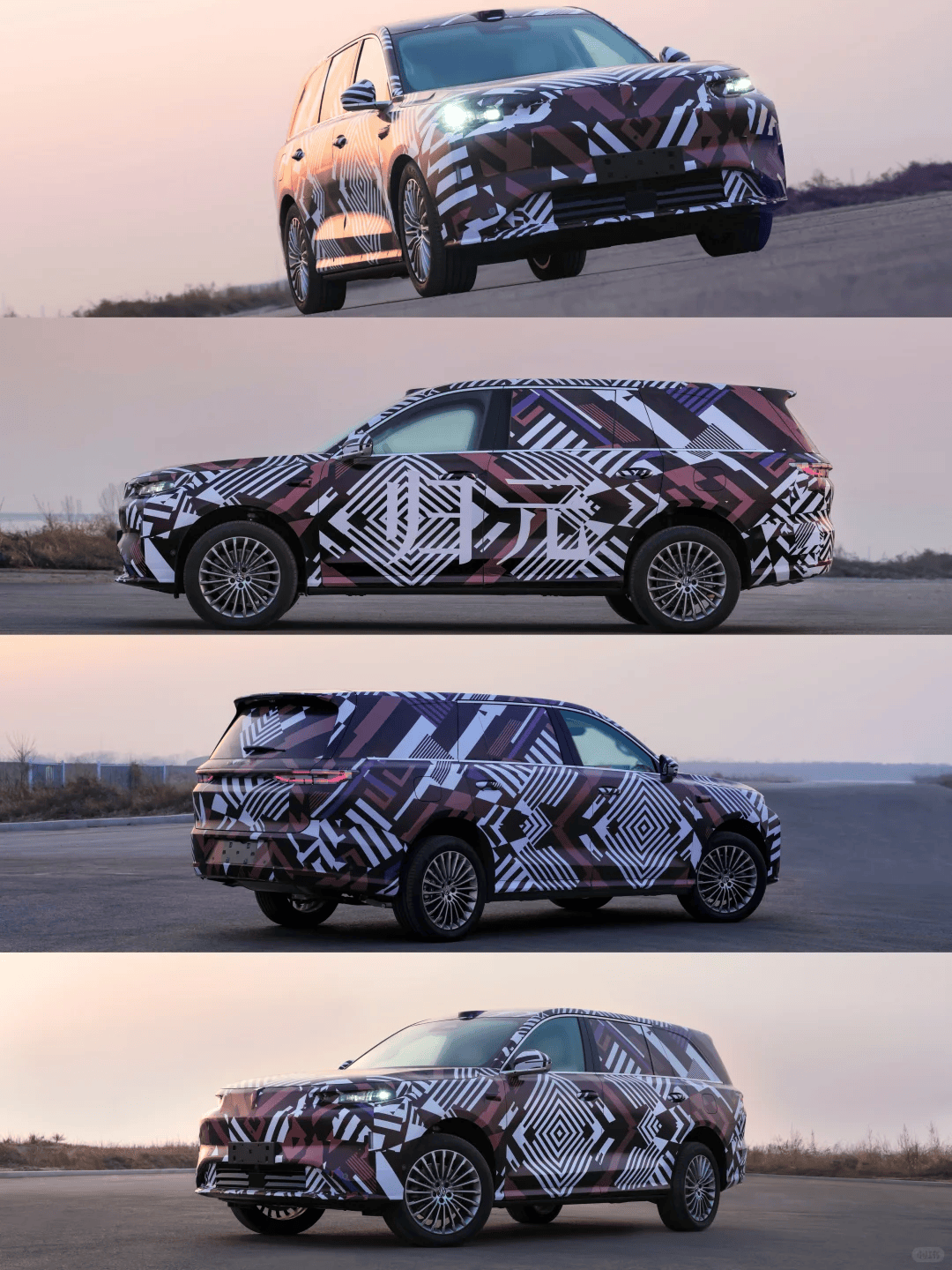 从已曝光的预告图和实车测试谍照来看,V9X采用了方正硬朗的车身设计语言,整体造型高大修长,侧面线条流畅有力。车辆配备了大尺寸密辐条轮圈和车顶激光雷达,预计将采用元戎启行的智能驾驶方案。车长超过5.3米的尺寸参数,使其直接跻身大型SUV行列。前脸设计采用封闭式格栅,中央镶嵌魏牌LOGO,底部特别标注"POATING"字样彰显产地身份。贯穿式日行灯带与竖置转向灯的组合,配合厚实的前包围设计,营造出强烈的视觉冲击力。车尾部分延续了当前大型SUV流行的层次感设计,贯穿式尾灯融入家族化元素,既保持时尚感又强化了品牌辨识度。