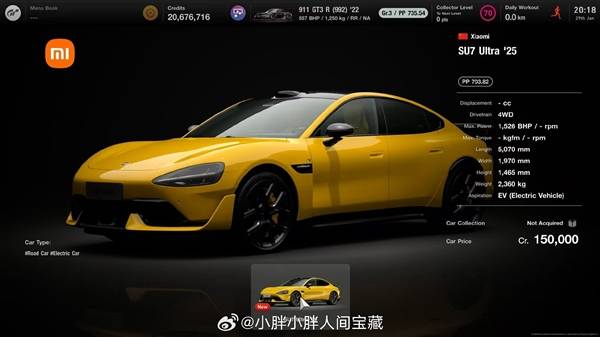 作为GT系列27年历史中首款正式收录的中国品牌车型,SU7 Ultra的加入具有特殊意义。游戏开发团队运用高精度扫描技术,完整还原了量产版车型的空气动力学套件、碳纤维装饰以及专属轮毂设计,车身光影效果与现实车辆几乎难以分辨。小米汽车官方社交媒体特别强调:"从反光涂层到刹车卡钳细节,每个部件都经过反复调校,确保玩家获得极致沉浸体验。"