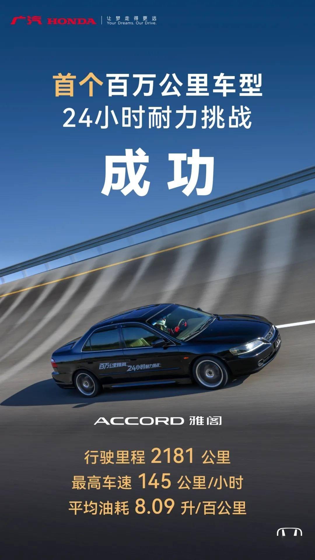 广汽本田近日宣布,其主导的行业首个百万公里车型24小时耐力测试圆满落幕,参与挑战的第六代雅阁以出色表现完成极限考验。这辆行驶里程达978,294公里的"老将"在测试中累计行驶2181公里,全程保持零故障记录,用实力验证了经典车型的耐用品质。