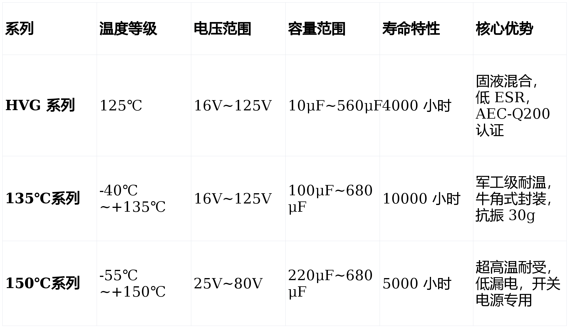 与传统消费级电容器相比,车规级产品的核心差异体现在全生命周期的可靠性保障上。从材料选型到生产工艺,均需符合IATF16949汽车质量管理体系标准,并通过AEC-Q200的100%测试覆盖。以合粤电子为例,其产品矩阵已实现135℃至150℃超高温系列的国产化突破,填补了国内高端车规电容的市场空白。其中,150℃系列电容通过优化电解液配方与封装结构,在保持高容量的同时将漏电流降低30%,特别适用于自动驾驶等对功能安全要求严苛的场景。